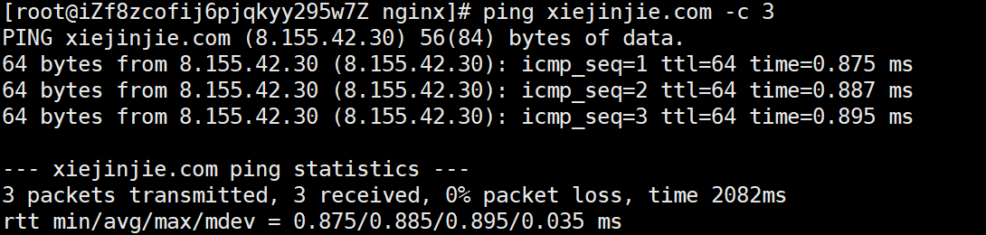 dns解析生效后,在服务器终端中使用ping命令向域名发起请求,可以获取到服务器的应答。