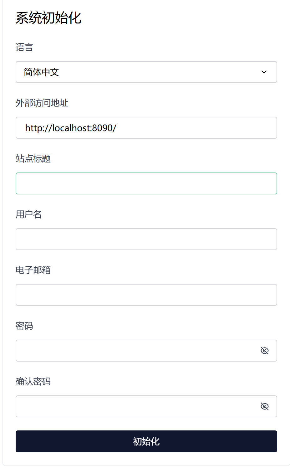 成功访问可以看到系统初始化的提示,填写博客标题和登录用户名密码进行初始化。
